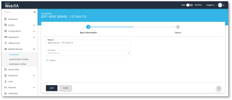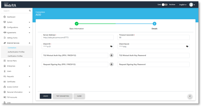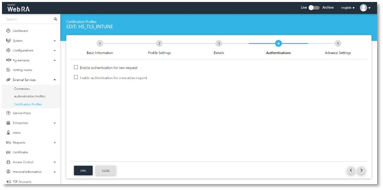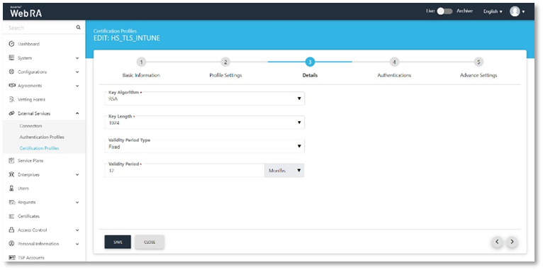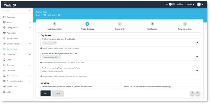 - Certification Profiles created for ADSS Server and Web RA.