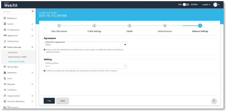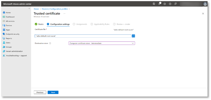 ADSS Web RA Server Integration with Microsoft Intune