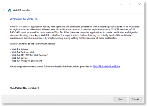 - The Web RA installer will launch, at the Welcome dialog, click Next.