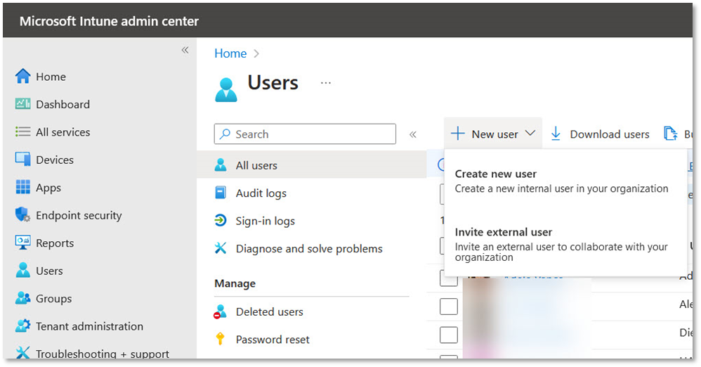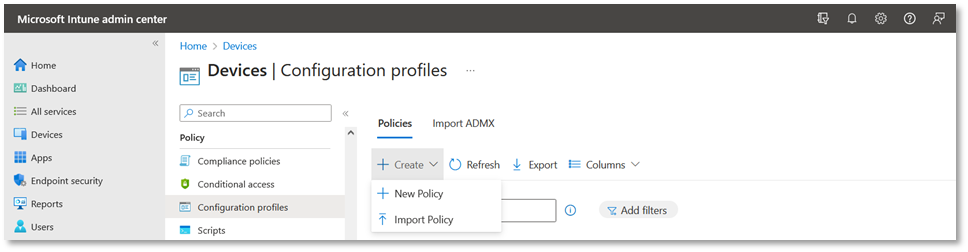 - Access the Microsoft Intune admin center.