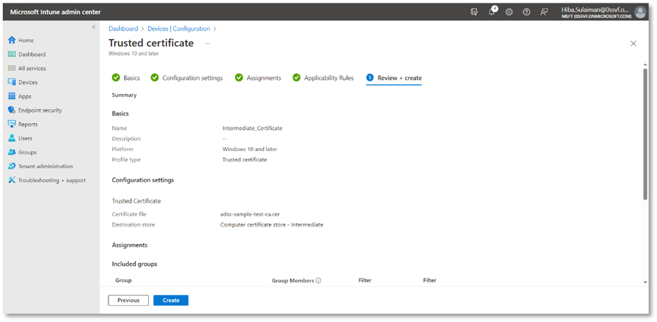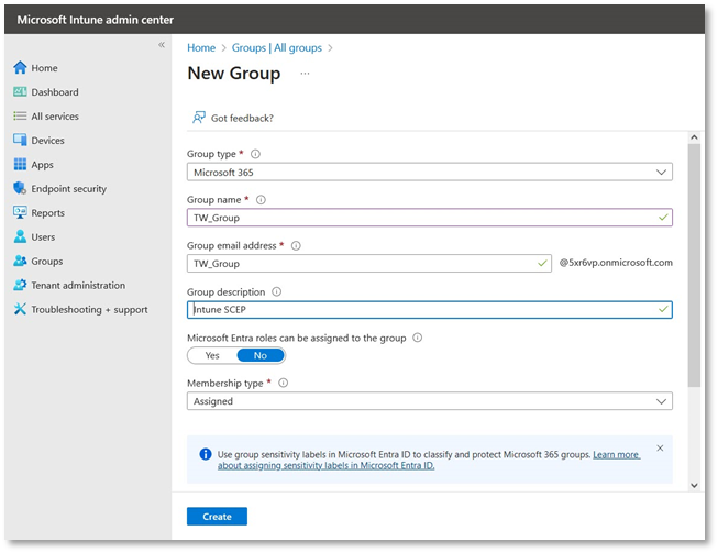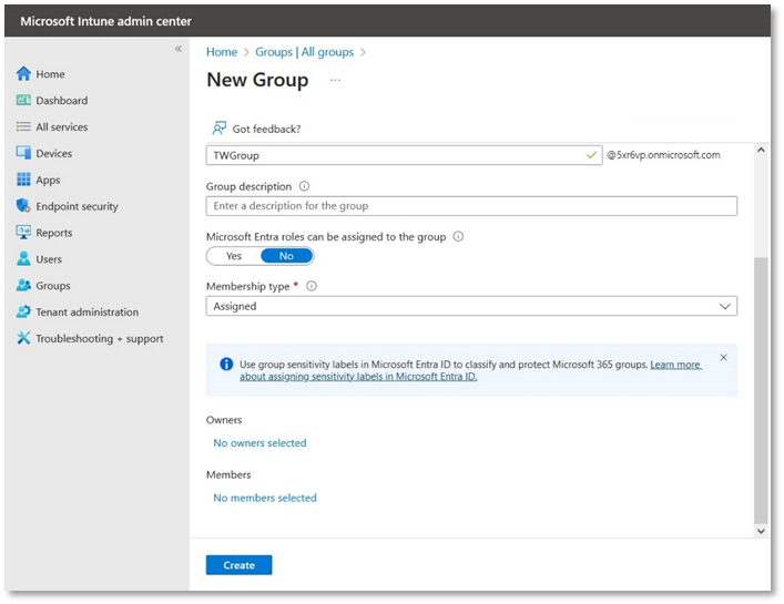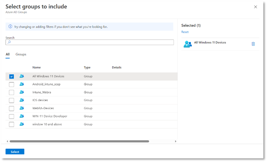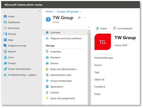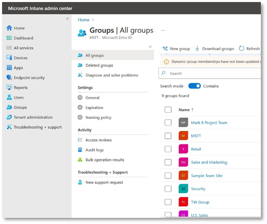 - In case you are unable to access Groups in the Microsoft Intune admin center, make sure that you are not connected to Ascertia’s network. Switch to a different network to access Groups.