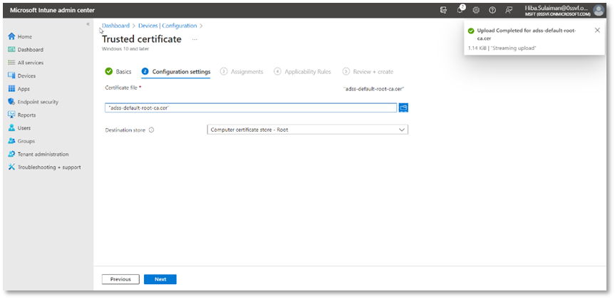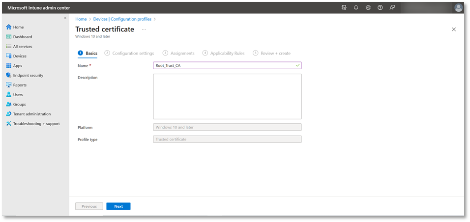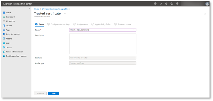 You are required to upload Root and Intermediate certificates, but if you do not have them, the steps below will guide to create certificates from ADSS Server to build a chain of trusted certificates, that will be required while creating configuration profiles in the Microsoft Intune admin center.