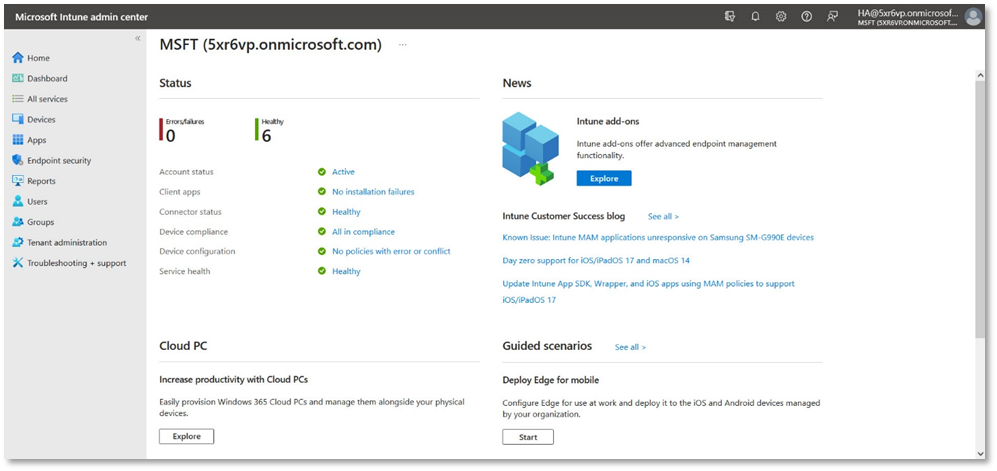 Microsoft Intune is a cloud-based endpoint management solution. It manages user access and simplifies application and device management across various devices, including mobile devices, desktop computers, and virtual endpoints. Microsoft Intune can help you keep your managed devices secure and up to date while helping you to protect your organization’s data from compromised devices.