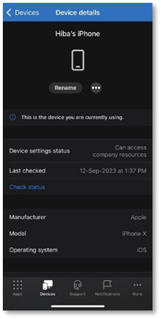 - Once your device in enrolled, your device details will appear.