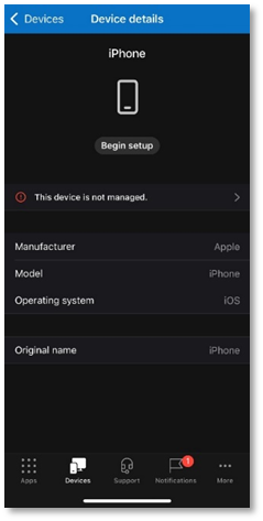 - Tap Begin setup to enrol your device.