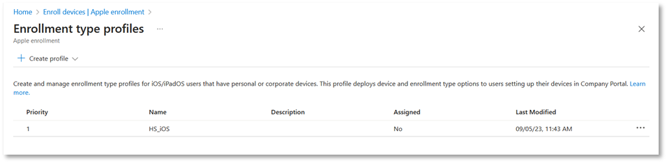 - The profile you created will be listed in the enrolment type profiles listing.