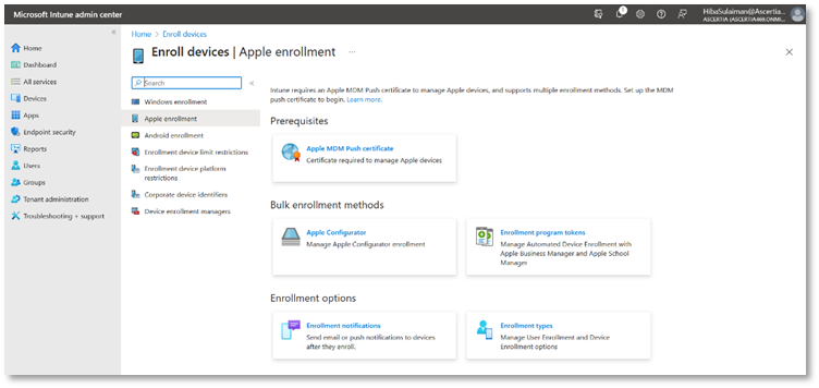 Setup iOS Enrolment in Intune Application