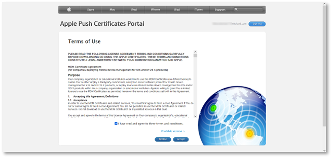 - At the Terms of Use, select I have read and agree to these terms and conditions, and click Accept.