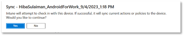 - Now, you can Sync via Company Portal app or from the Microsoft Intune admin center as explained above, to apply all the profiles you have created for your Android device. Once the policies are applied, your certificates can be viewed from the ADSS Web RA admin or web portal (depending on the type of certificates i.e. User or device).