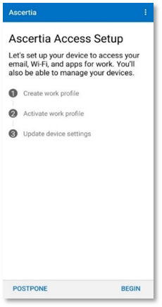 - From the set up organization access screen, tap Begin.