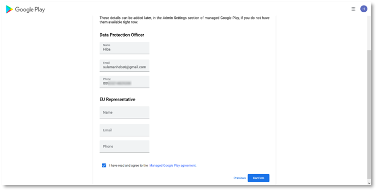 - Select I have read and agree to the Managed Google Play agreement