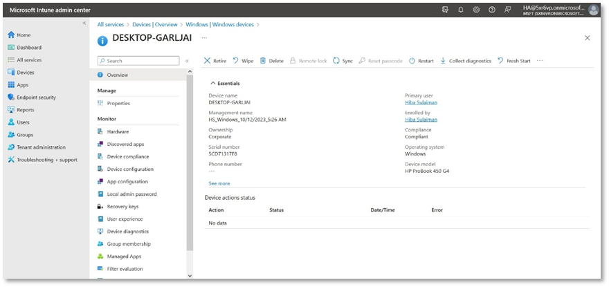 - Your device is enrolled in the Microsoft Intune admin center.