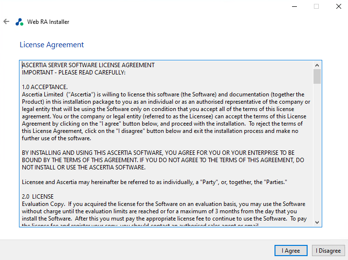 Follow the instructions below to install ADSS Web RA's regular release. Before starting the installation make sure that you have taken a backup of the Web RA database and have stopped the IIS Server.
