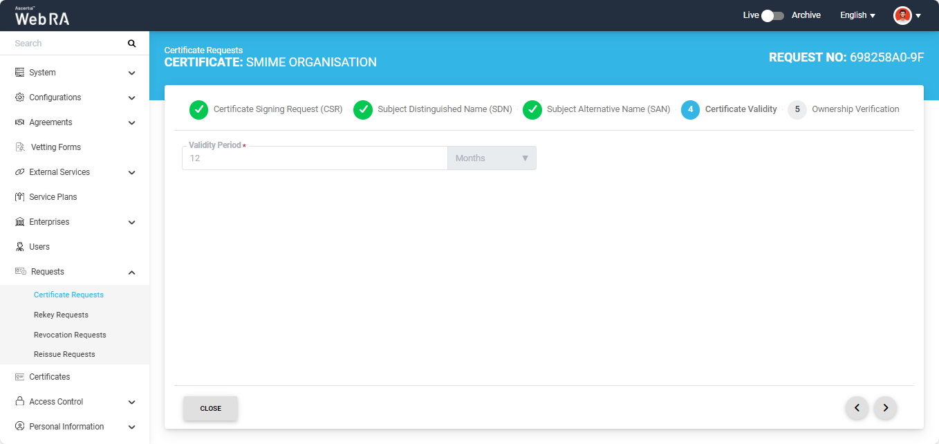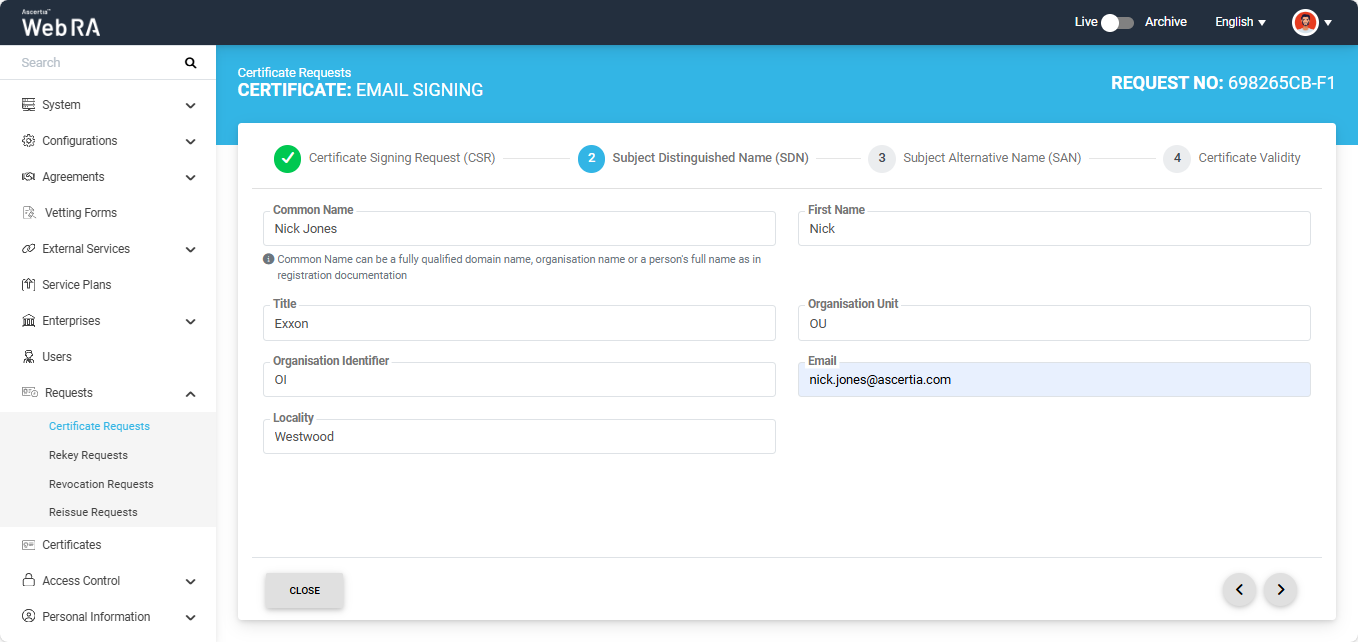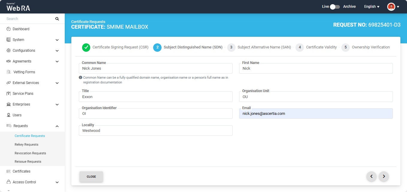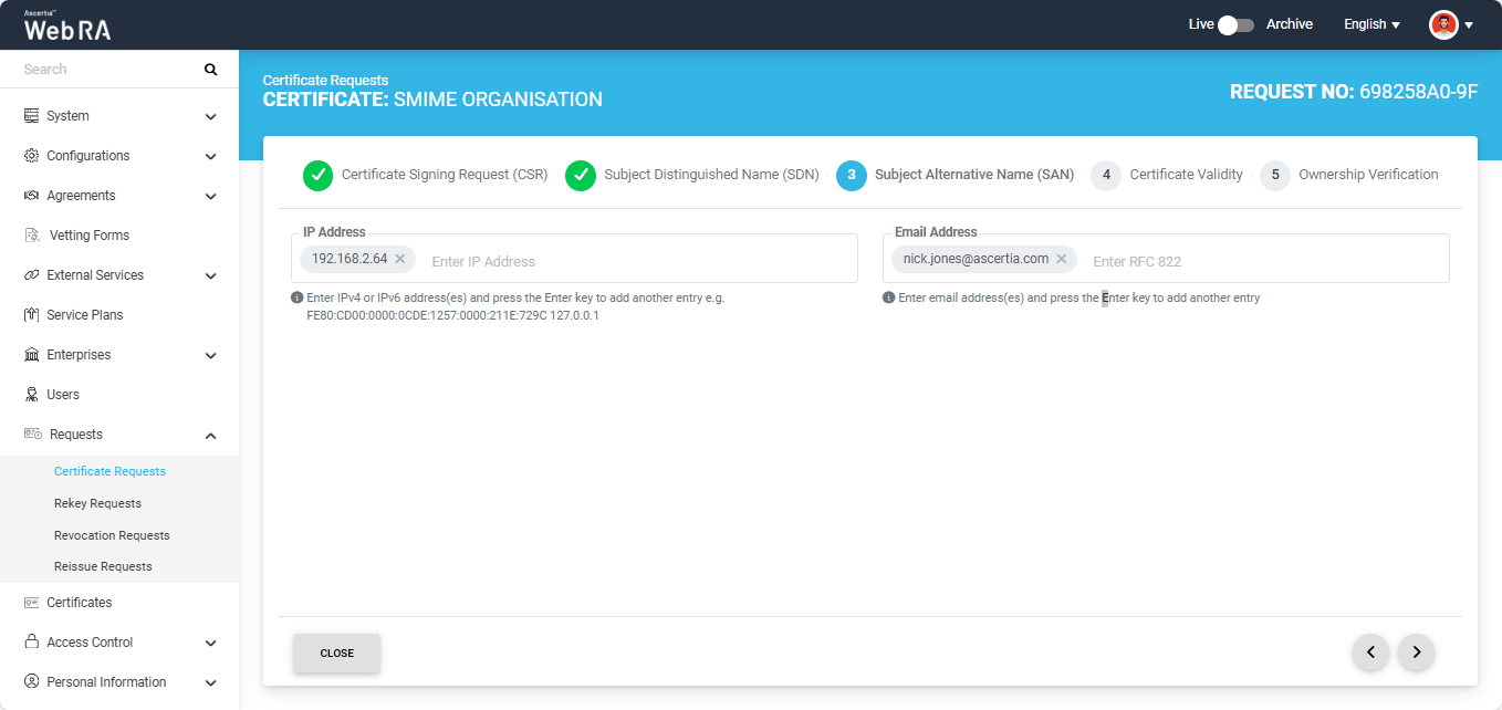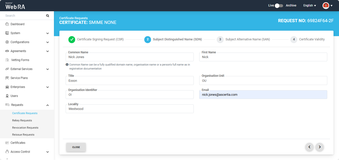 S/MIME certificate requests with Organisation validation type