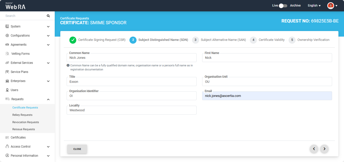 S/MIME certificate requests with Sponsor validation type