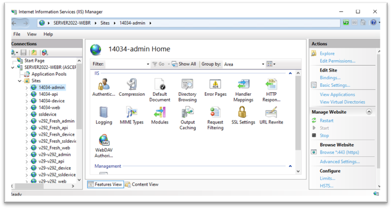 To stop the IIS Server, launch the IIS Server and click Stop under the Manage Server action.
