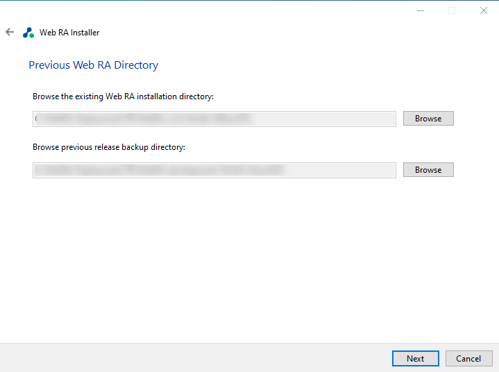 - Previous release backup directory will be set automatically. You also have the option to browse and select your own path.
