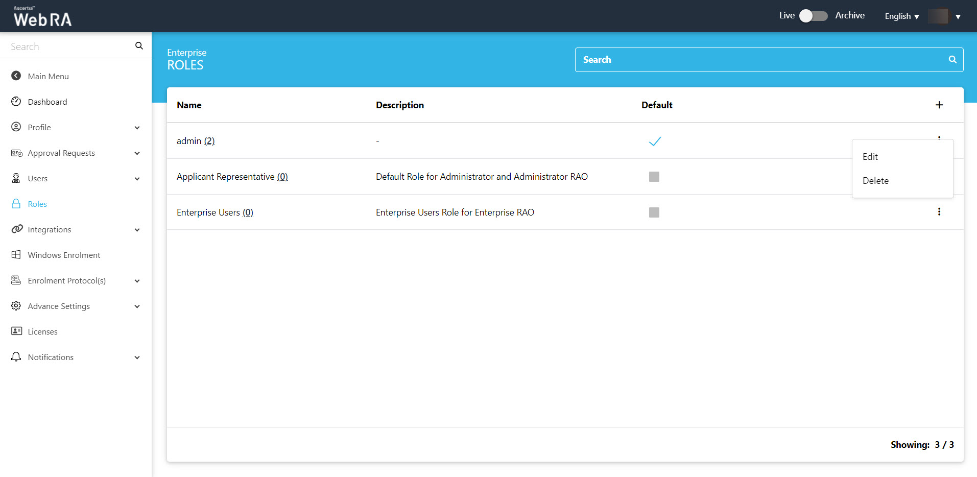An operator can add, update and delete enterprise roles. By default, only one role is created when an enterprise is registered.