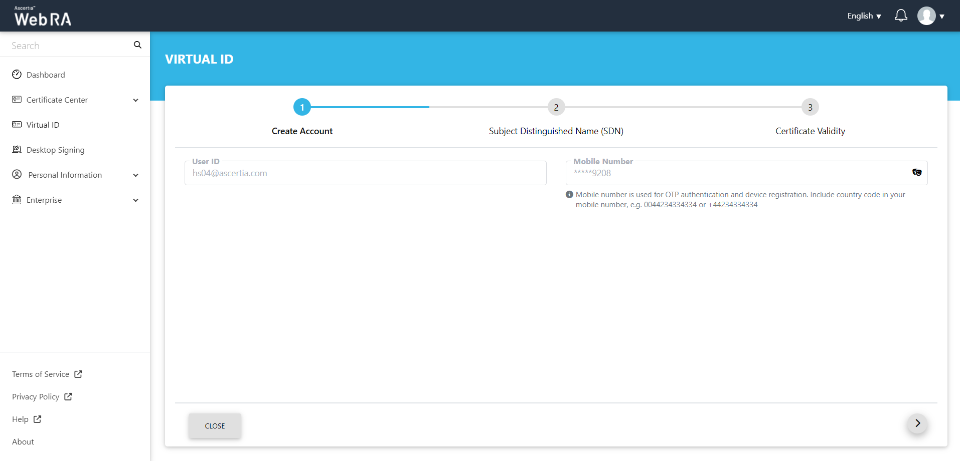 5. Create a virtual ID account on ADSS Web RA Web Portal