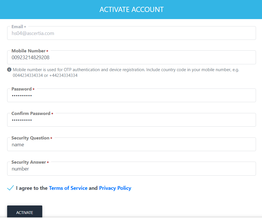 On the Create Account screen, the User ID and Mobile Number will be auto-filled, click >.