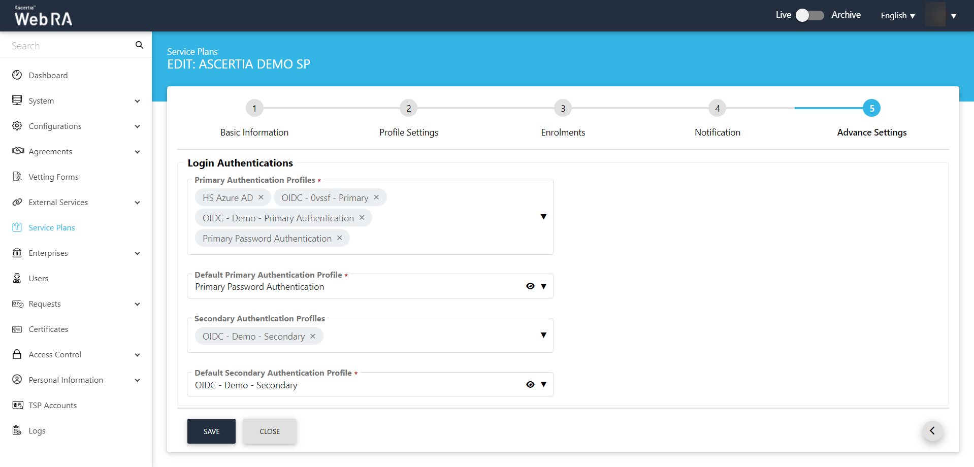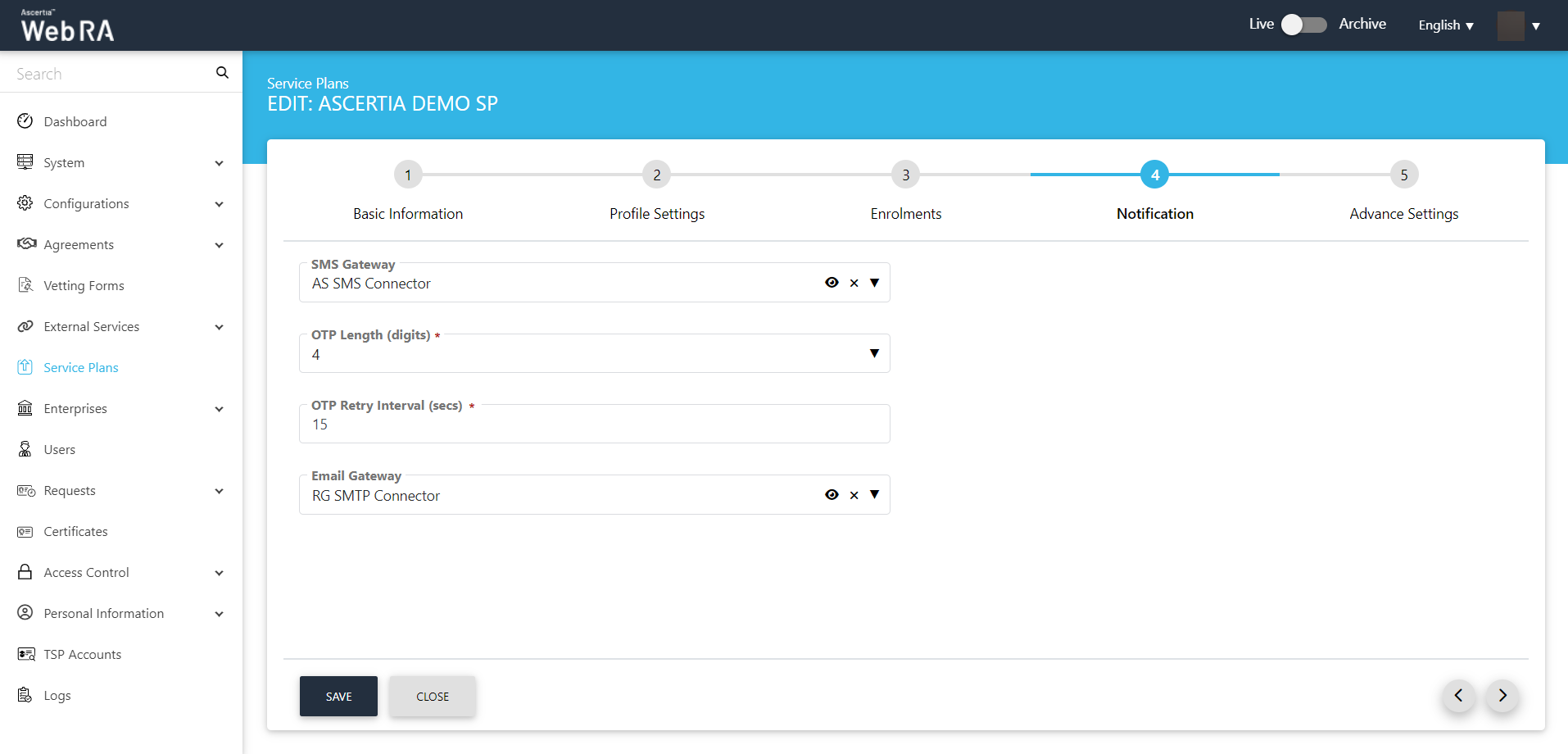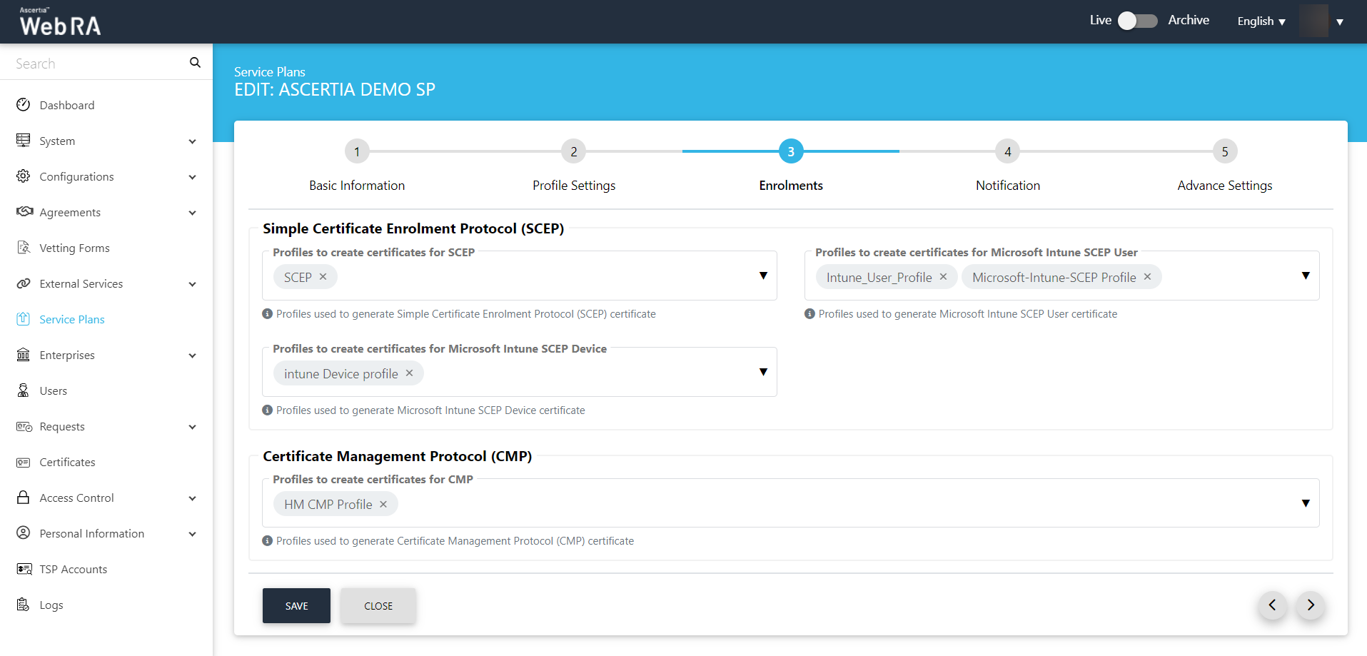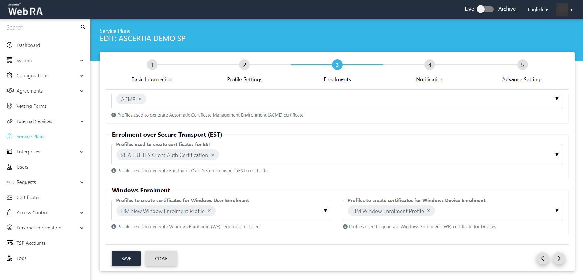 5. The ADSS Web RA Certification Profile must be configured in the Service Plan