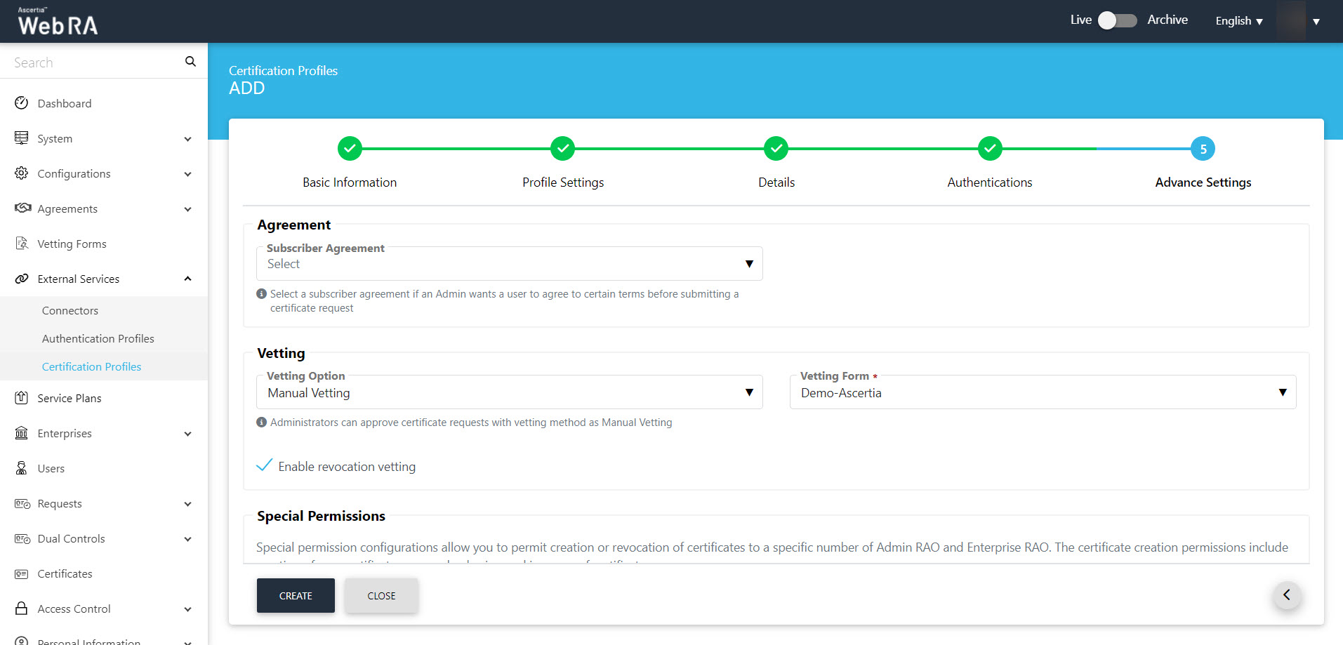Create a Certification Profile in ADSS Web RA