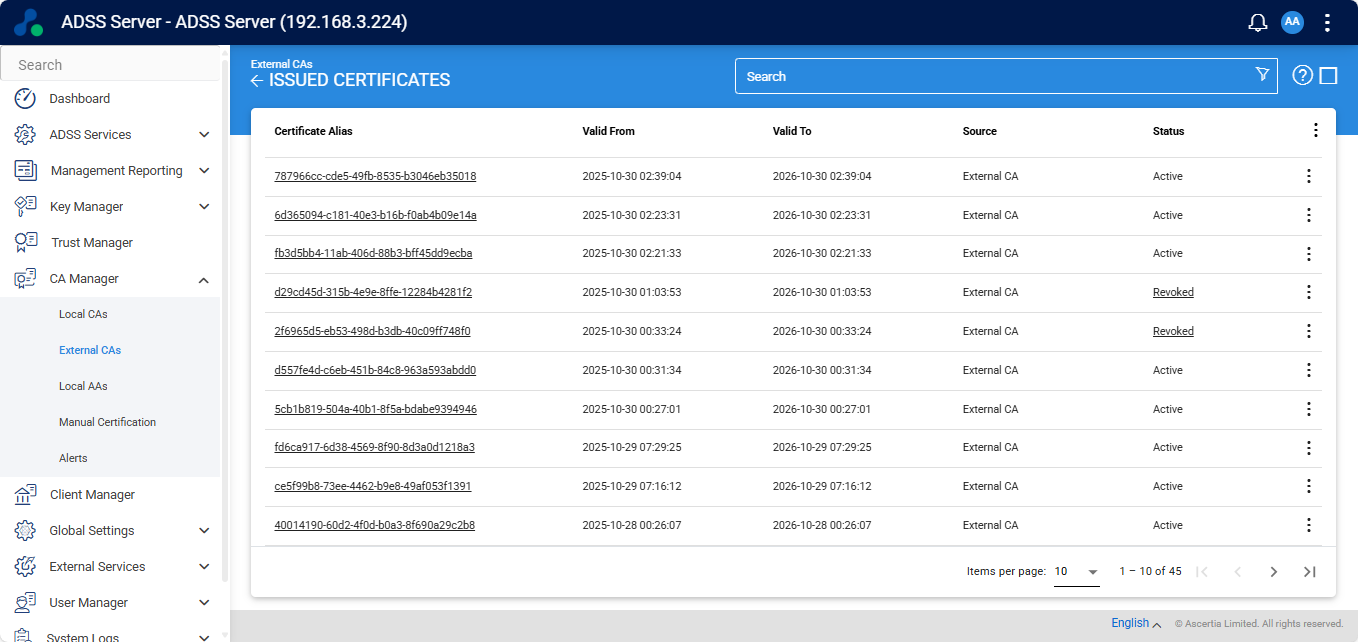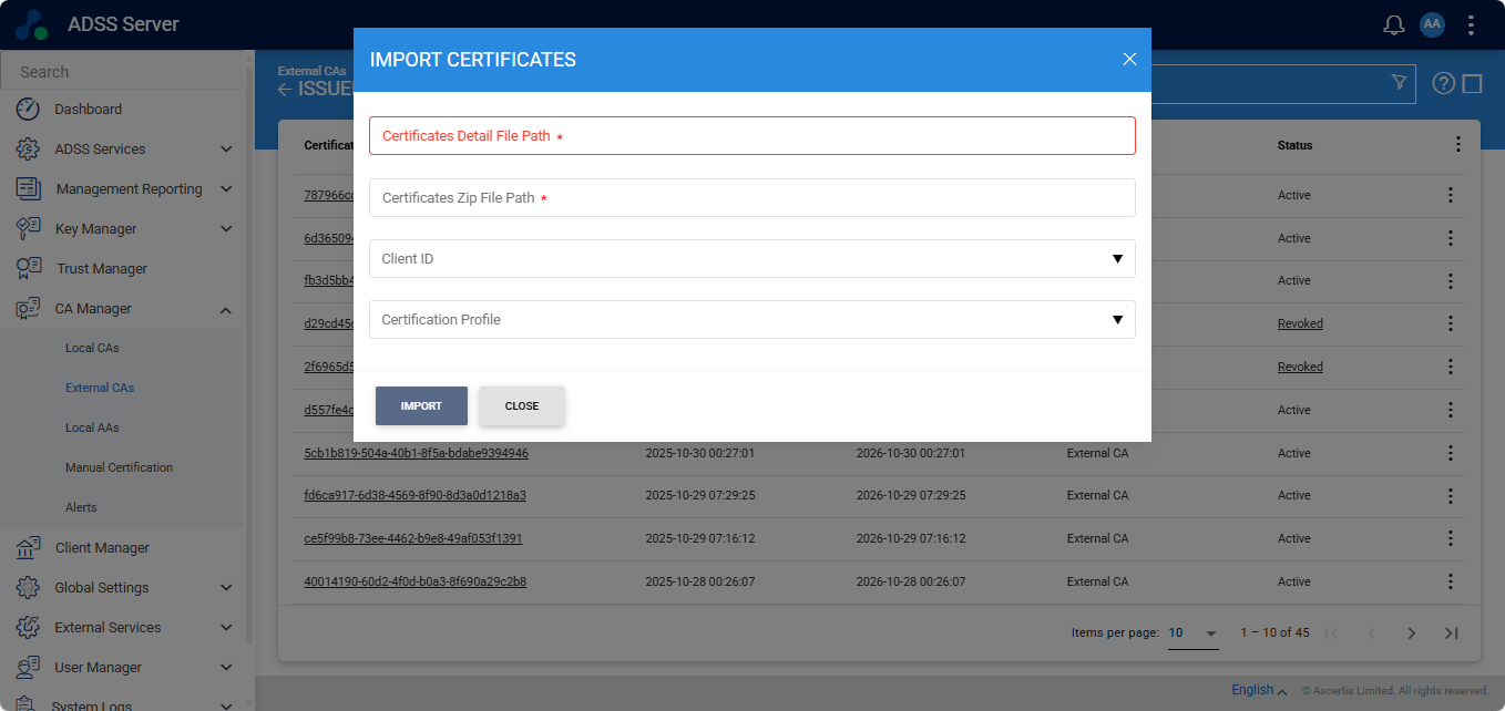 In this guide, you will learn how to import and substitute certificates issued by an external CA in the ADSS Web RA system.