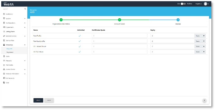 - Import a license and allocate certificate quantities to the test enterprise.