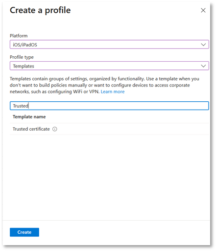 - From the Enrolment Options, click Enrolment Types. Then click Create profile. Select iOS/ iPadOS.