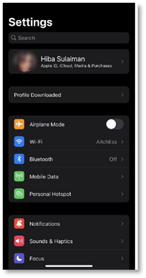 - Then go to your iOS device’s Settings. Under the Apple ID, tap Profile Downloaded.