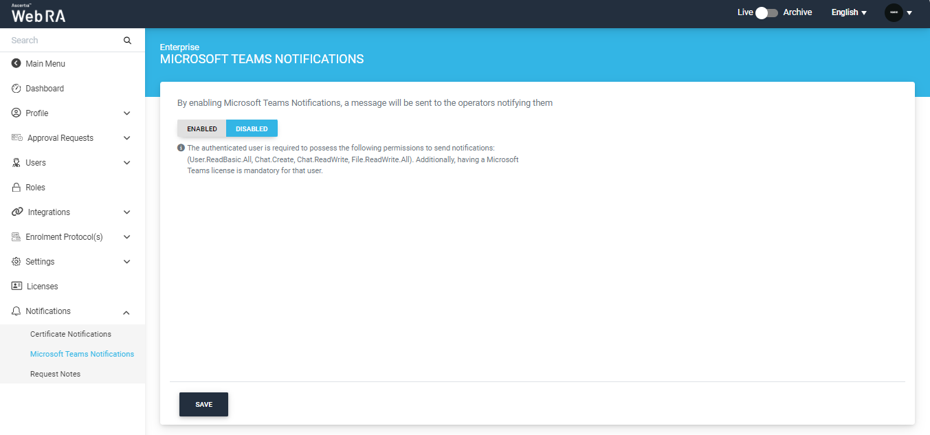 Click on ‘Enabled’ to activate the Microsoft Teams Notification settings.