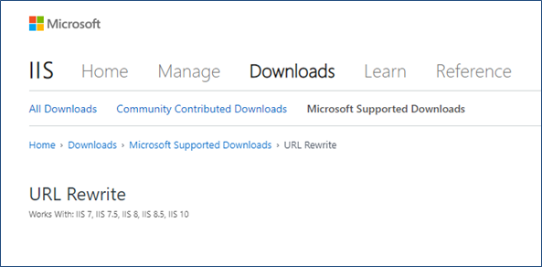 Download Microsoft IIS URL rewrite module 2.1 from the following link: