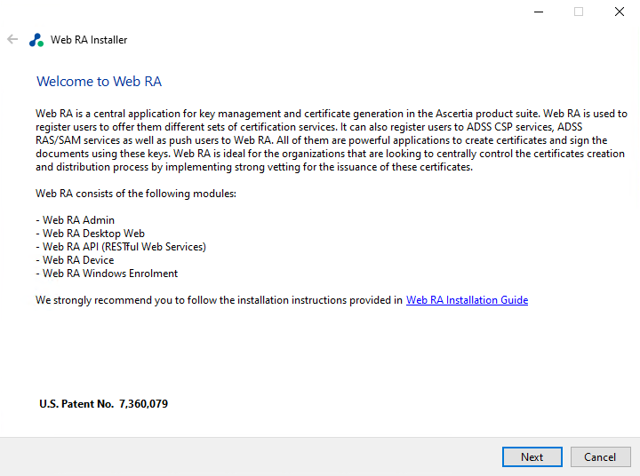 Follow the instructions below to install ADSS Web RA's regular release. Before starting the installation make sure that you have taken a backup of the Web RA database and have stopped the IIS Server.