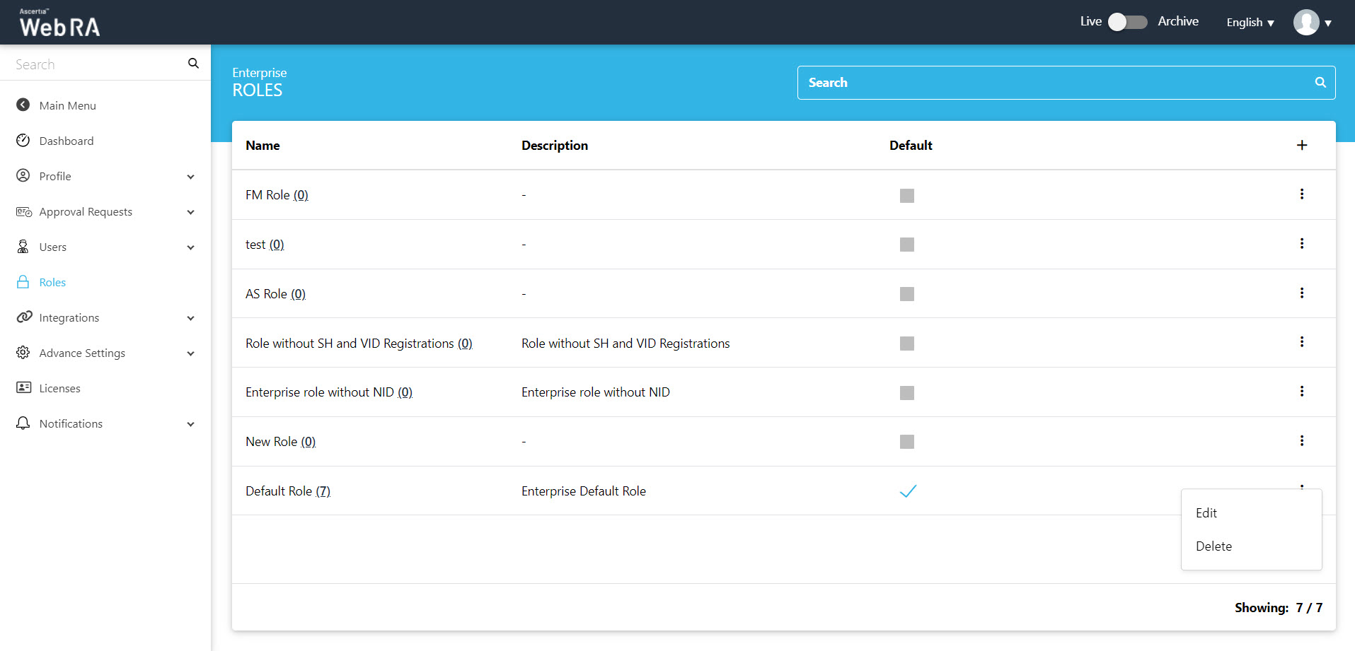 An operator can add, update and delete enterprise roles. By default, only one role is created when an enterprise is registered.