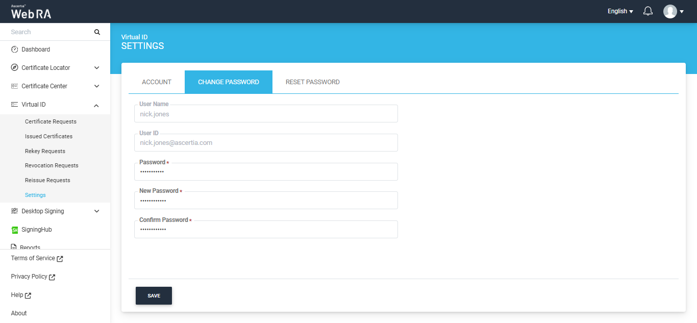 Change Virtual ID Password