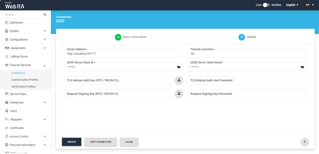 A connector is required in ADSS Web RA Admin to communicate with the respective ADSS Server instance.