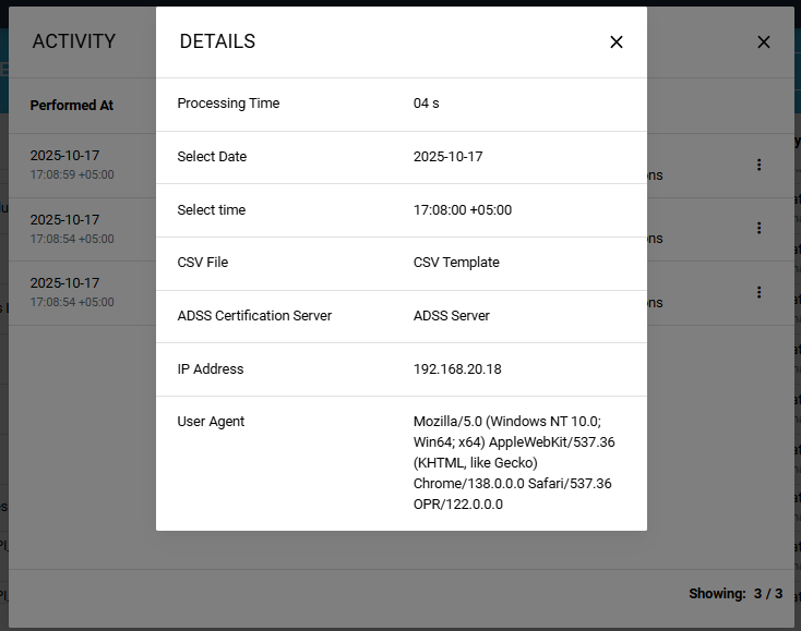 To download the CSV file containing the certificate details provided during the job configuration, select the ‘Download CSV’ option. The file will then be saved to your system.