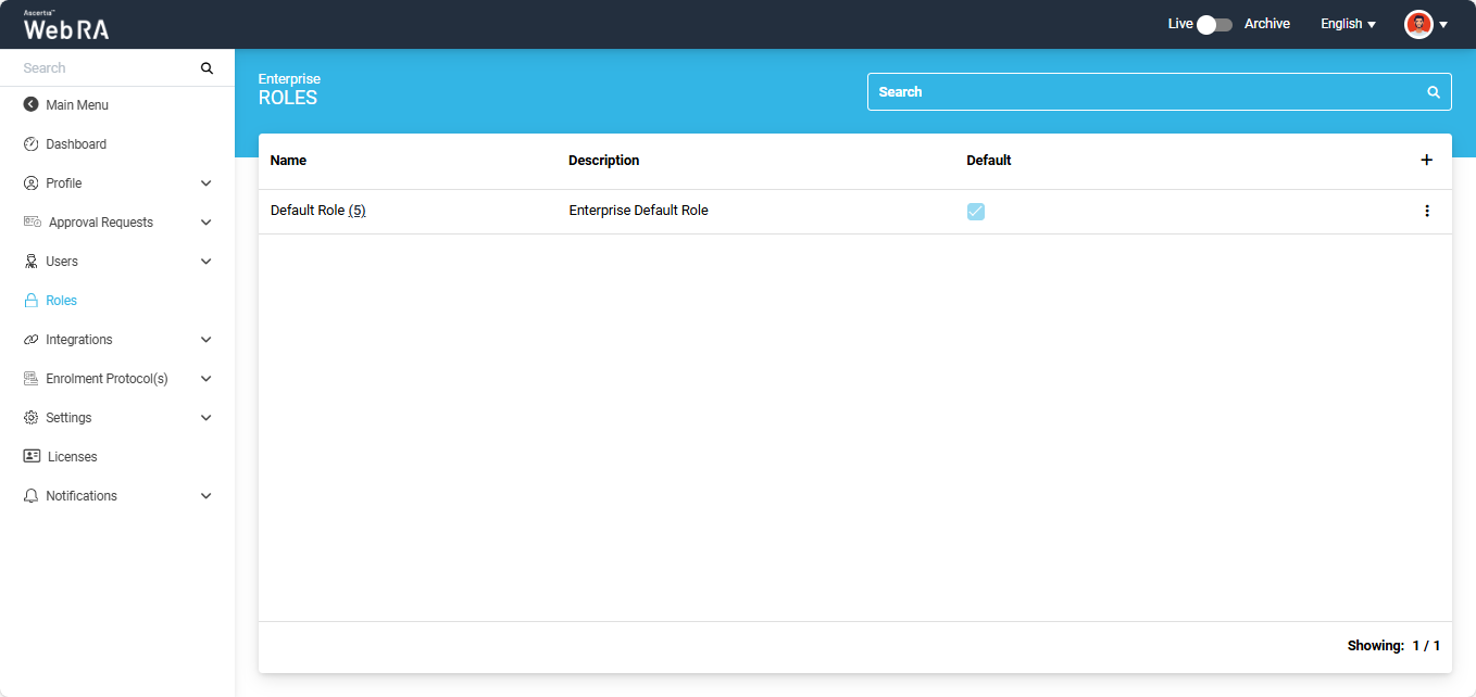 Enter the required name and description (optional) of the role. You can set the role to be used as default by enabling the ‘Default’ checkbox.