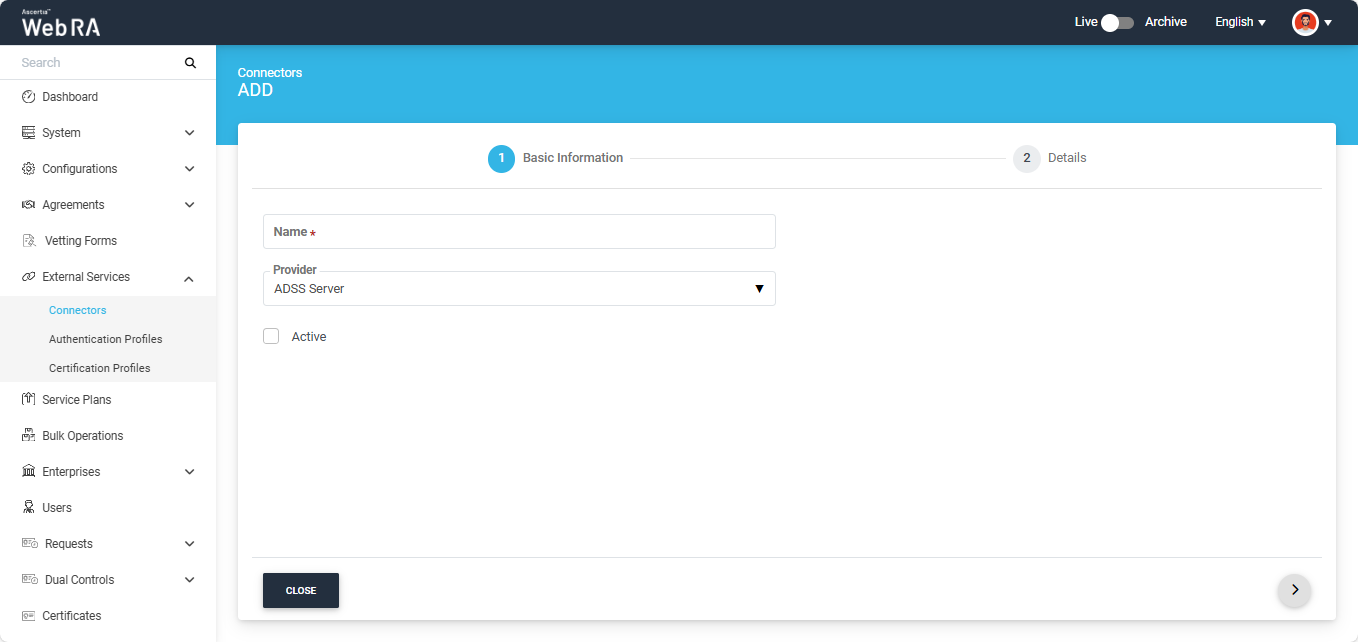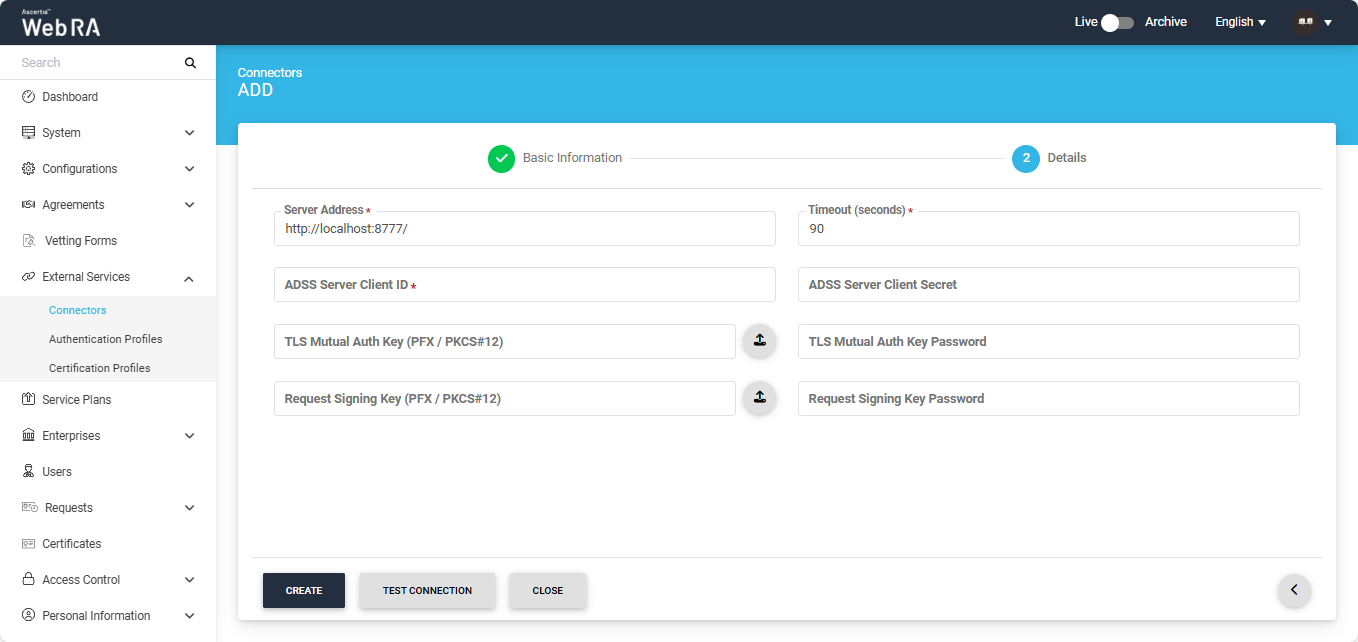 To view the complete details on creating different types of connectors in ADSS Web RA, refer to the 'Connectors' section.