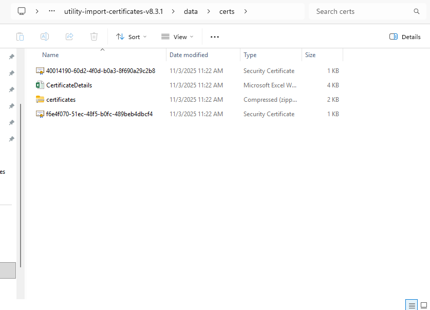 The import certificates report screen will appear, listing all generated reports along with their respective details.