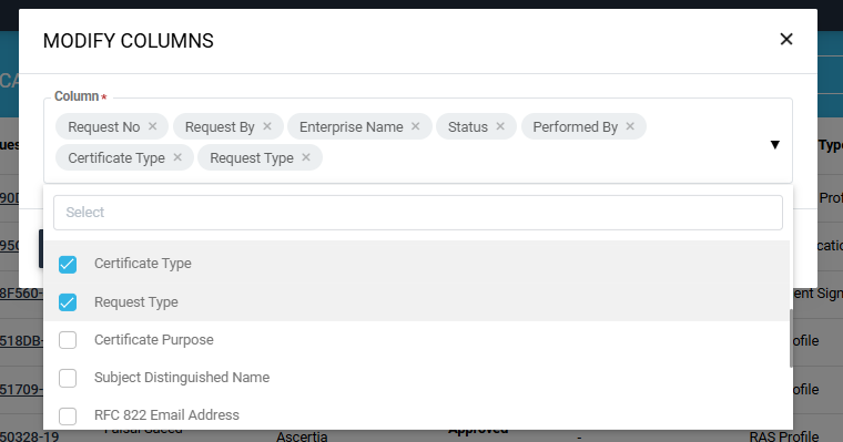 Click on the ‘Modify Columns’ option to edit the listing column entries. This will open a ‘Modify Columns’ dialog.