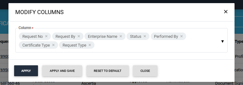 On this screen, users have the option to save the search criteria, modify it, or clear the criteria to view all certificates in the listing again.