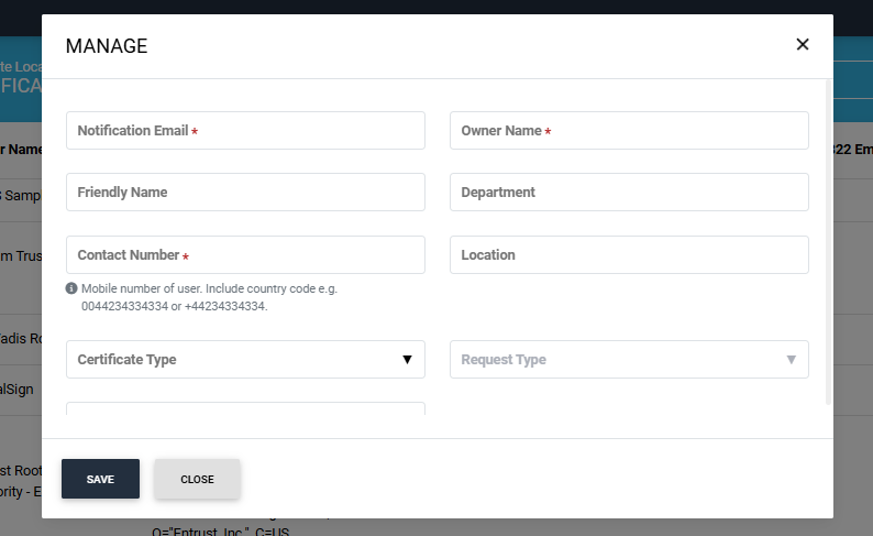 Enter the contact number of the user to whom the certificate is being assigned to. (This is a mandatory field). |