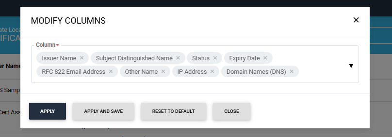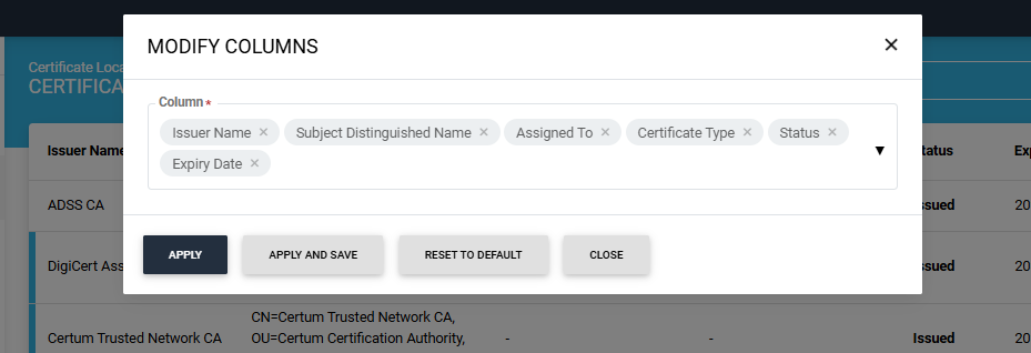Click on the ‘Modify Columns’ option to edit the table column entries. This will open a ‘Modify Columns’ dialog.