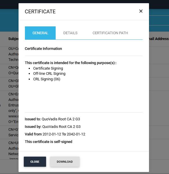 To download the certificate, click the ‘Download’ button at the bottom of the ‘Certificate’ popup box.