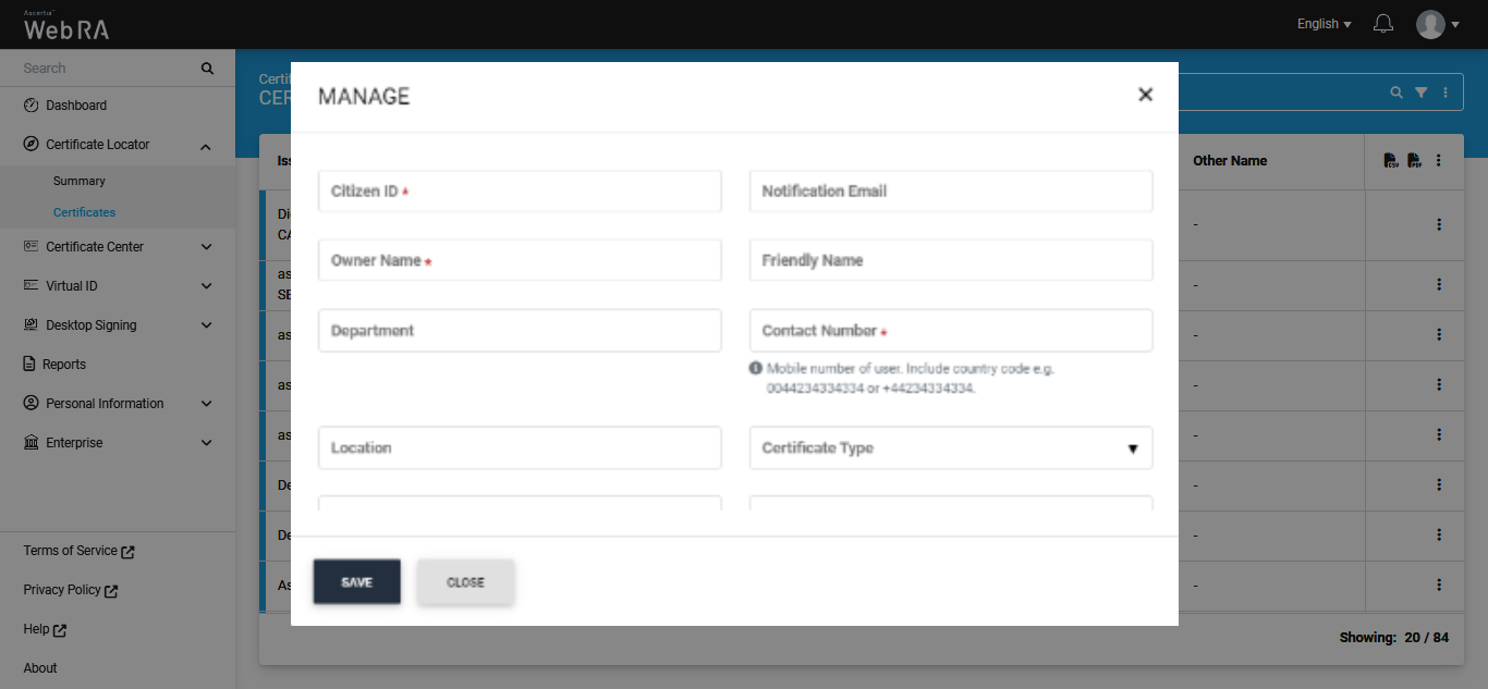 If the user is registered with a citizen ID, the ‘Manage’ dialog will display the ‘Citizen ID’ field, and it will be mandatory. The ‘Notification’ field, on the other hand, will be optional.