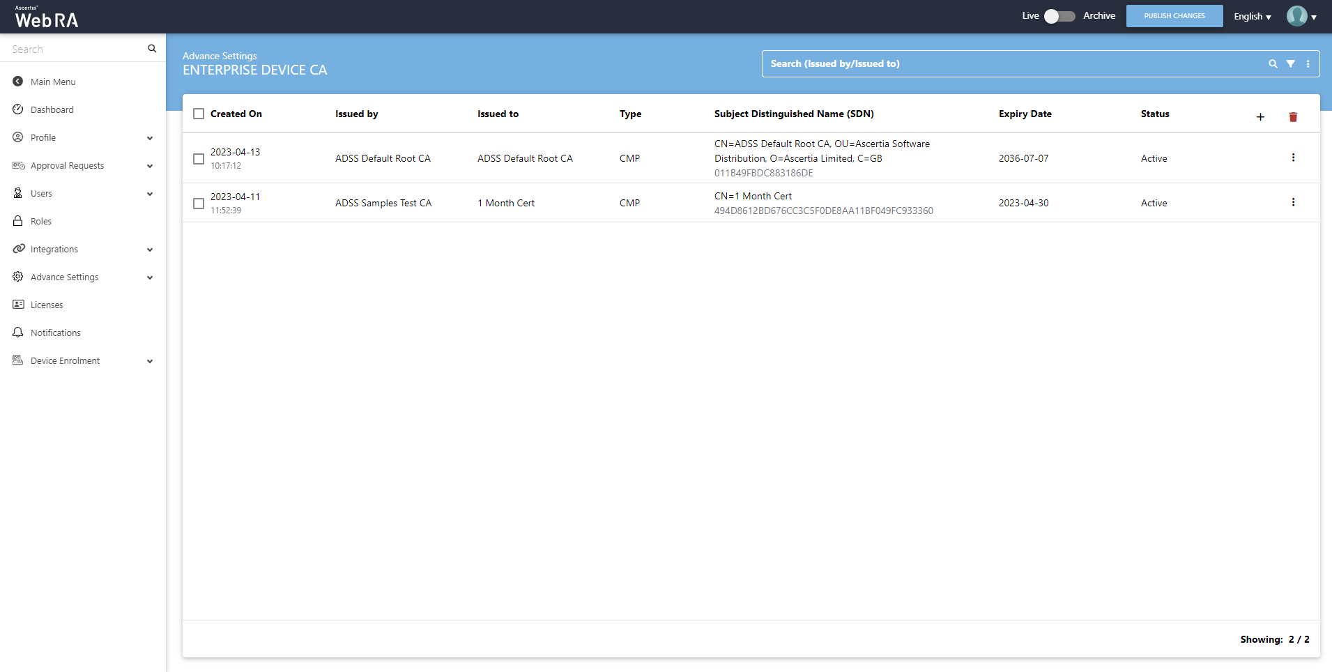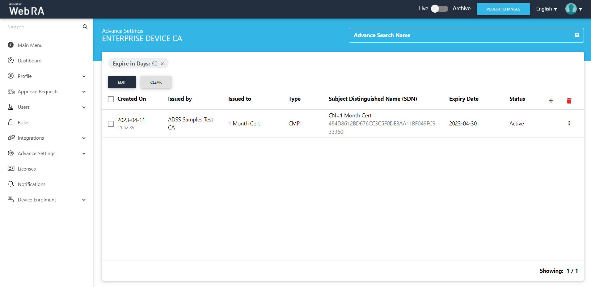 ADSS WebRA allows an operator to configure the revocation policies for the virtual ID certificates.