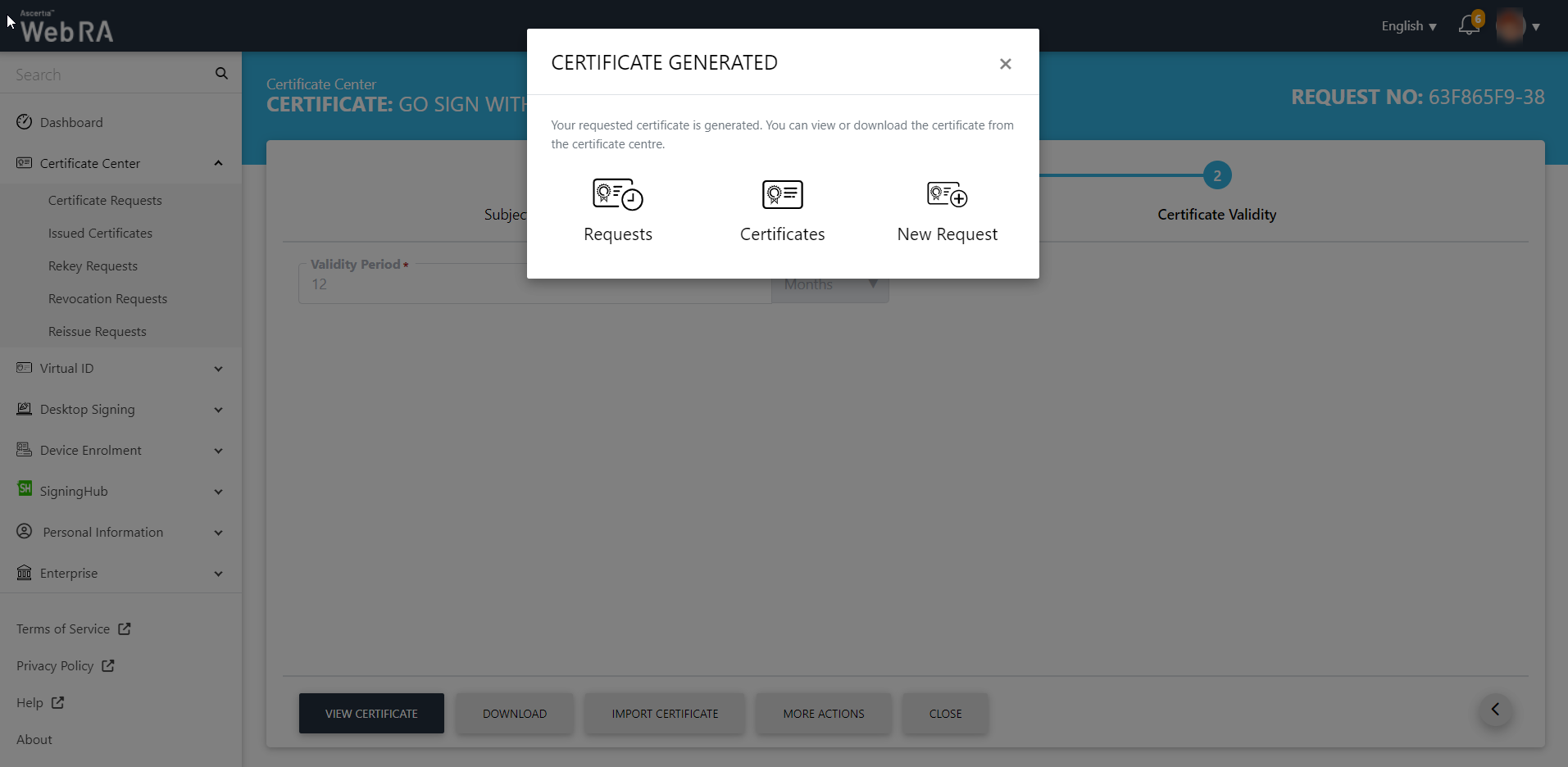 You can also import a certificate by clicking on the Import Certificate button on the screen.