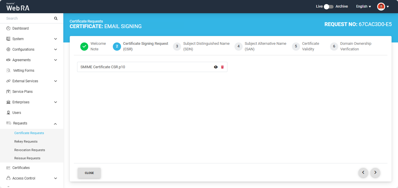 Once the CSR is uploaded, the following screen will be displayed.