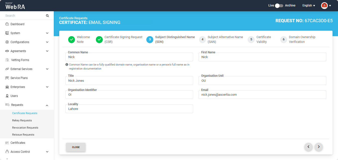 Click next to navigate to the Subject Distinguished Name (SDN) screen. After entering the required details, click Next.